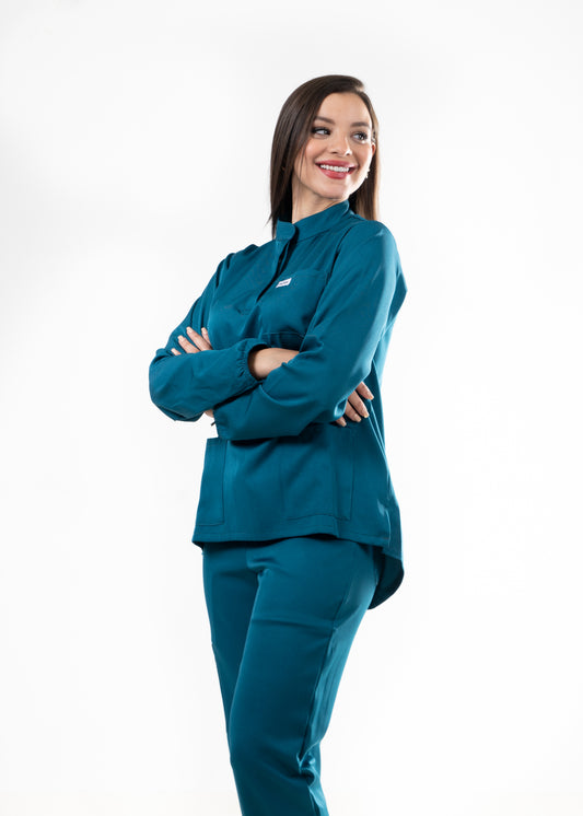 BLEU CANARD SCRUBS - COL OFFICIER AVEC MANCHE